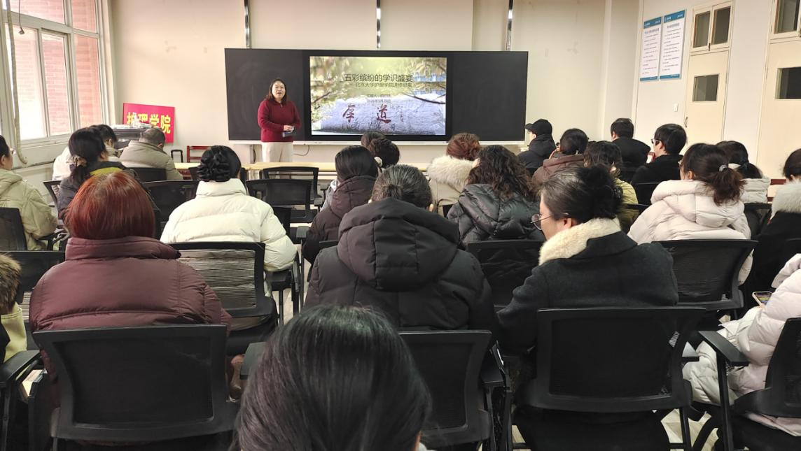 2026年1月26日下午,护理学院在A14-215召开全体会议。会议由副院长张文杰主持,会上,教师田丽颖就赴北京大学护理学院进修情况作了专题汇报,分享其在北大护理学院进修期间的收获与感悟。