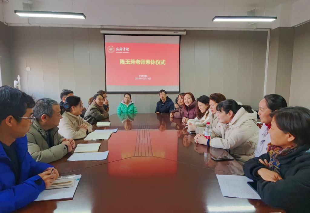 2025年12月25日上午,护理学院在A14-205会议室为陈玉芳老师举行荣休仪式。院长张金华,党总支副书记、分工会主席王恃,副院长张文杰及教师代表参加会议。仪式由王恃主持。