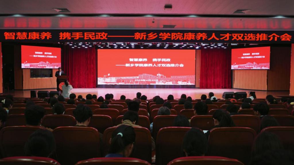 4月25日上午,由新乡市民政局、新乡学院护理学院联合主办的“智慧康养 携手民政”新乡学院康养人才双选推介会顺利举办。本次活动启动仪式在新乡学院文化艺术中心举行,现场招聘环节同步在学校招聘大厅开展。活动共吸引17家市内优质医院、康养机构及相关企业参会,发布12类就业岗位,人才需求90人,来自新乡学院及周边兄弟院校的400余名应往届毕业生到场求职应聘。